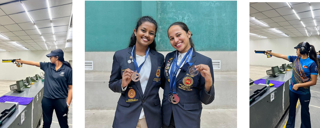 In the crisp air of Kohuwa, from November 14 to 25, the National Shooting Sport Federation of Sri Lanka (NSSF) unleashed its Open Rifle/Pistol Championship a battlefield where precision meets passion. Amid the sharp cracks of air rifles and the steady gaze of competitors, two trailblazers from the University of Sri Jayewardenepura’s Faculty of Applied Sciences lit up the scoreboard like shooting stars.